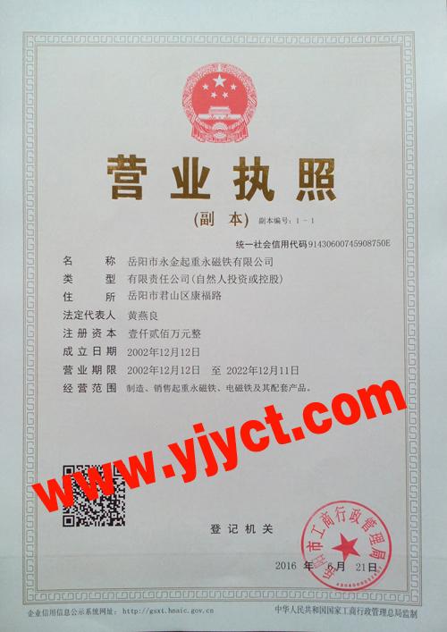 湖南永金磁力設備股份有限公司(原岳陽市永金起重永磁鐵有限公司)主要從事工業磁力設備的研發、生產和銷售。目前已開發出自動變換磁路起重永磁鐵、電動變換磁路起重永磁鐵、手動變換磁路永磁起重器、懸掛式永磁除鐵器、起重電磁鐵、電纜卷筒、磁力工裝等多種型號規格的磁力應用產品,各種產品均擁有自主知識產權。
